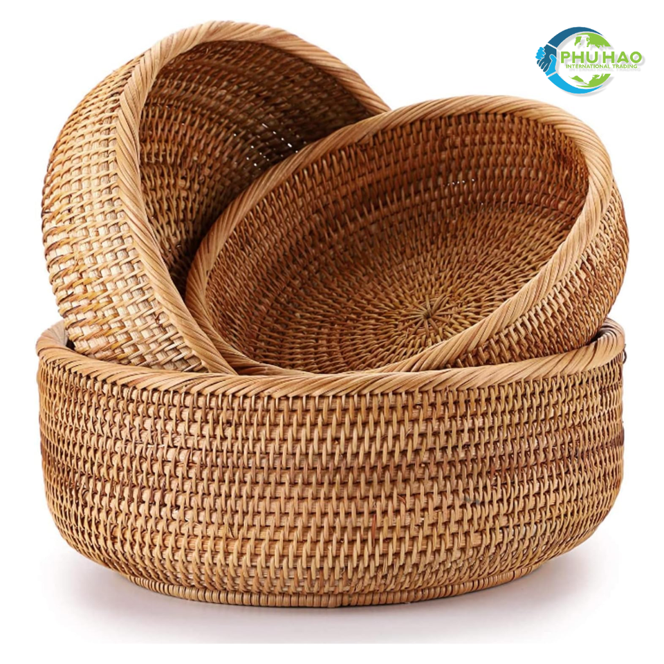 ตะกร้าหวายสานด้วยมือธรรมชาติจากเวียดนามสำหรับการจัดเก็บในห้องครัวในบ้านที่หรูหราและใช้งานได้จริง