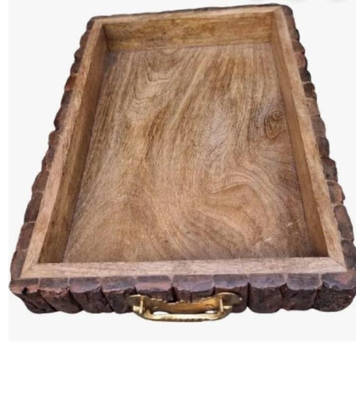 ถาดไม้ทำมือธรรมชาติอเนกประสงค์ ถาดไม้เนื้อแข็งสำหรับอาหารเช้า ชา โต๊ะรับประทานอาหาร ตกแต่งบ้านและห้องครัว