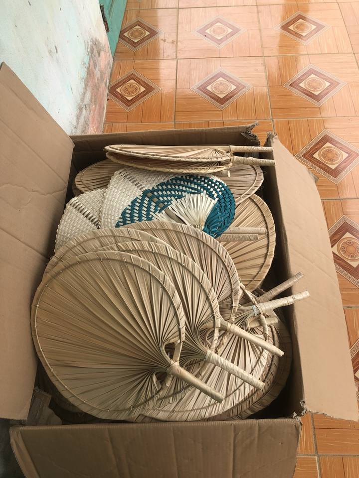 พัดลมใบปาล์มทำจากไม้ไผ่ธรรมชาติทำมือสำหรับงานแต่งงานของขวัญปาร์ตี้ของขวัญจากเวียดนามสำหรับตกแต่งแบบดั้งเดิม