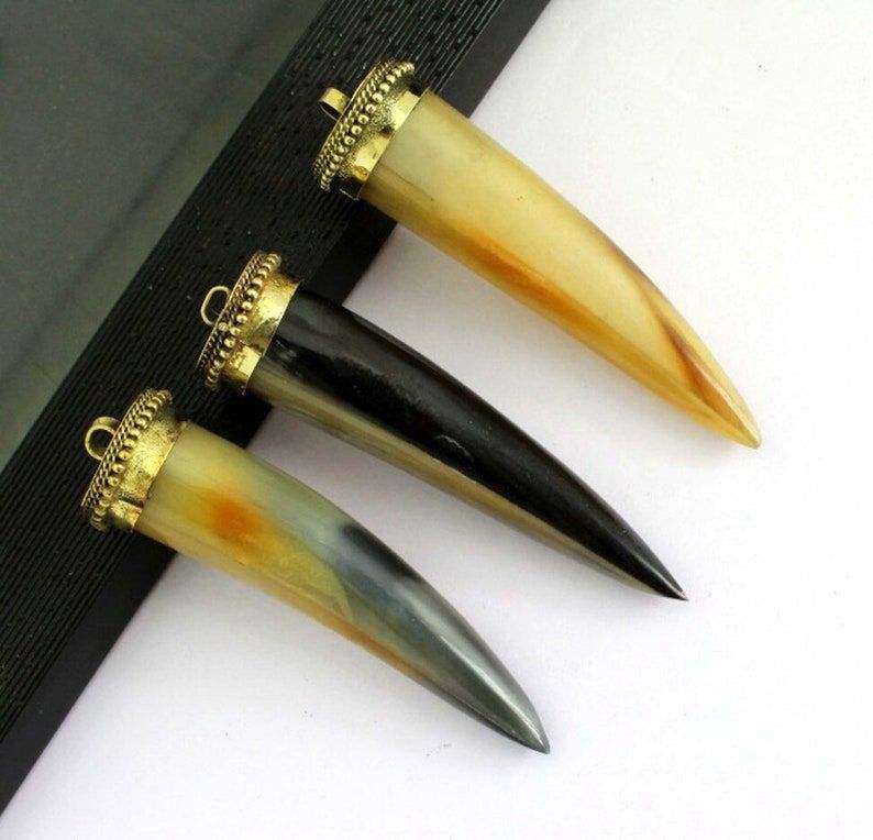 จี้เขาควายขัดเงาทำด้วยมือธรรมชาติคุณภาพสูงพร้อมงานแฮนด์เมดทองเหลืองอินเดียเครื่องประดับ HF งานฝีมือสำหรับงานปาร์ตี้