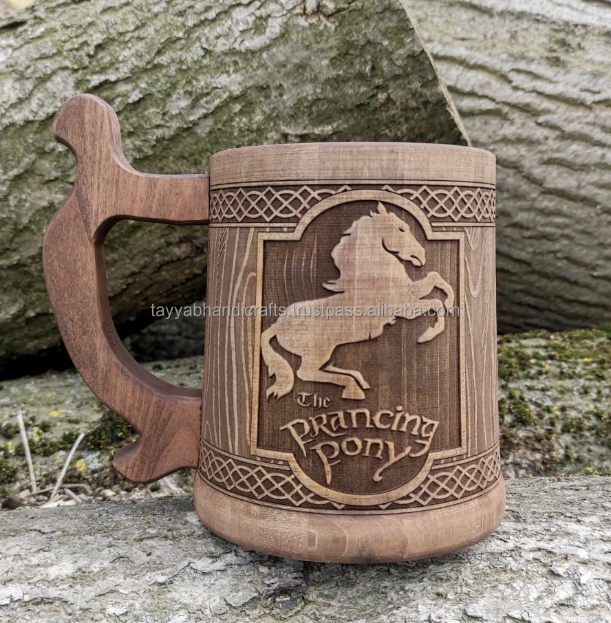 ถ้วยไม้สีน้ำตาลแบบย้อนยุคทำด้วยมือธรรมชาติพร้อมที่จับสำหรับดื่มชากาแฟไวน์เบียร์แก้วเครื่องดื่มร้อน