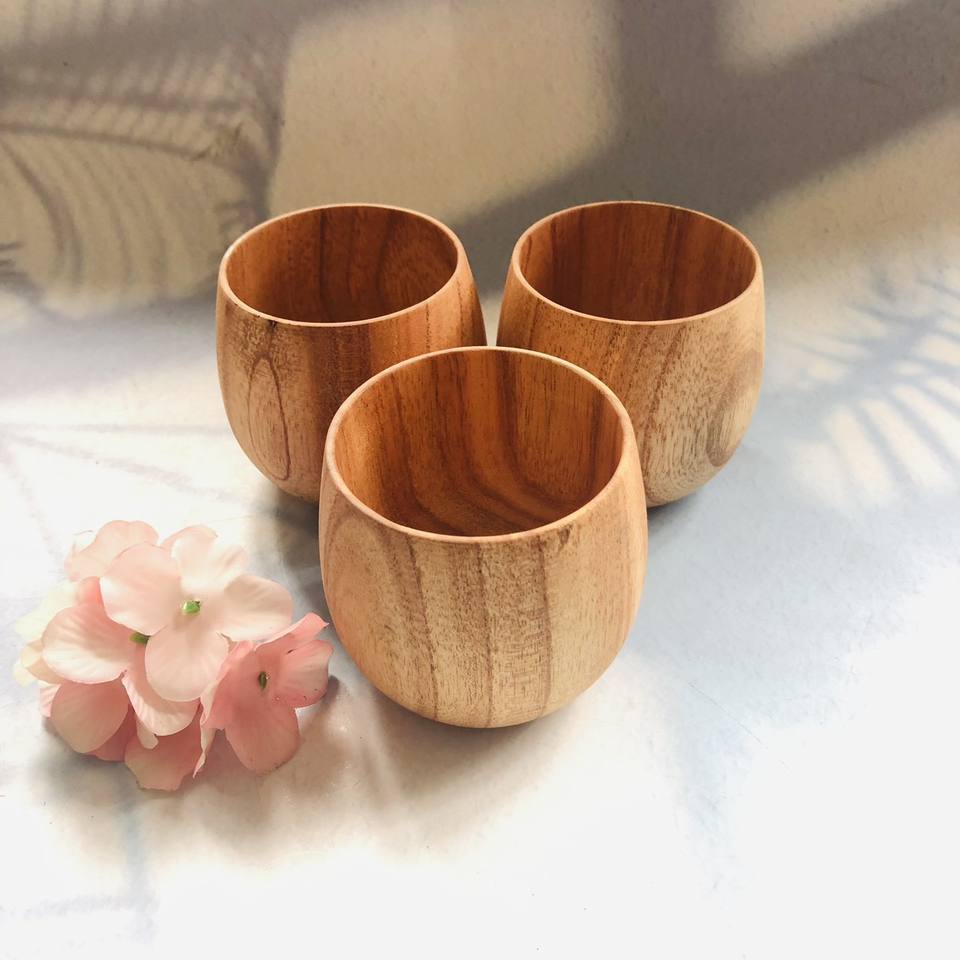 ถ้วยดื่มทำด้วยมือทำจากไม้ธรรมชาติพร้อมโลโก้ที่กำหนดเองถ้วยไม้จากเวียดนาม