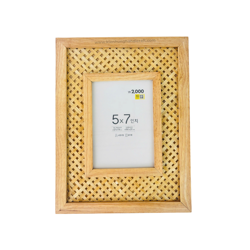 กรอบรูปไม้ไผ่และไม้ทอมือธรรมชาติ พร้อมลวดลายดอกไม้ สำหรับตกแต่งโต๊ะในห้องนั่งเล่น