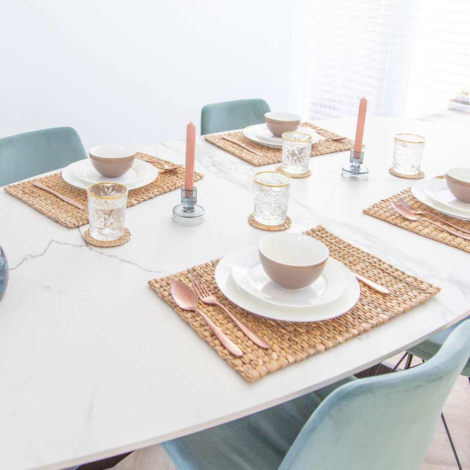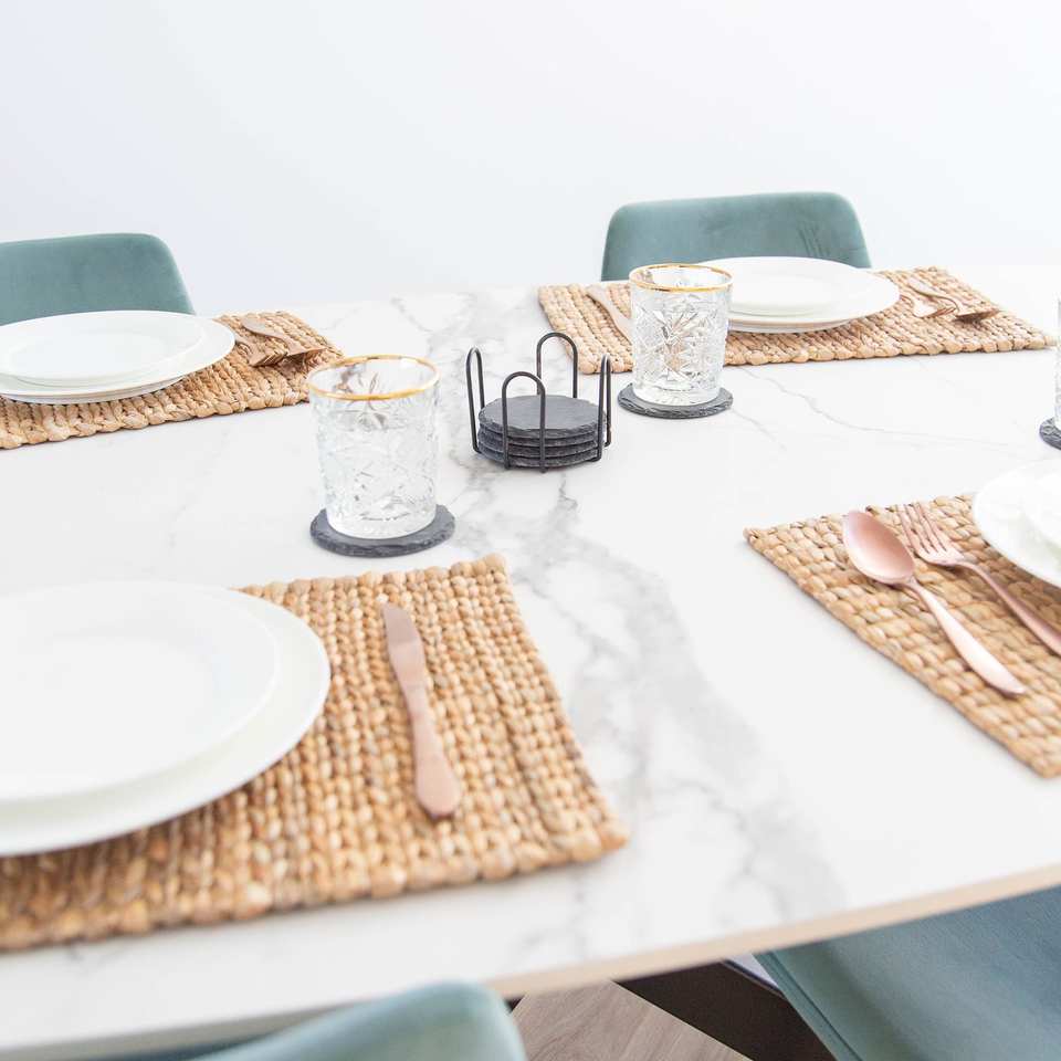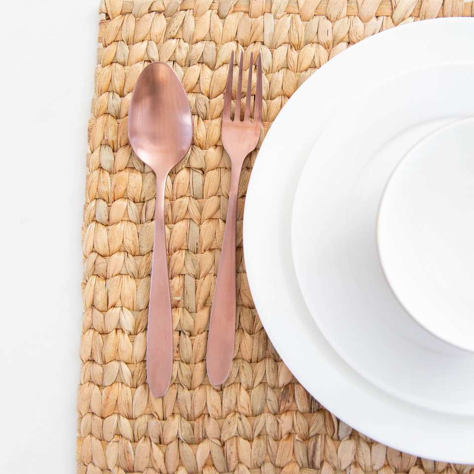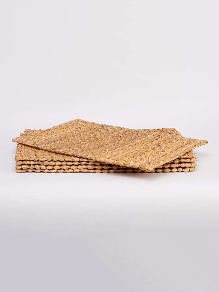 ชุดแผ่นรองจานสานมือจากผักตบชวาธรรมชาติ 4 ชิ้น เป็นมิตรกับสิ่งแวดล้อม แผ่นรองจานทรงกลมแบบถัก สำหรับตกแต่งโต๊ะอาหารสไตล์เรียบง่าย