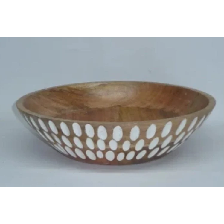 ชามไม้เนื้อแข็งขัดเงาสำหรับเสิร์ฟผลไม้สด ผลิตด้วยงานฝีมือที่แข็งแรงและดีไซน์สวยงาม เป็นมิตรกับสิ่งแวดล้อม