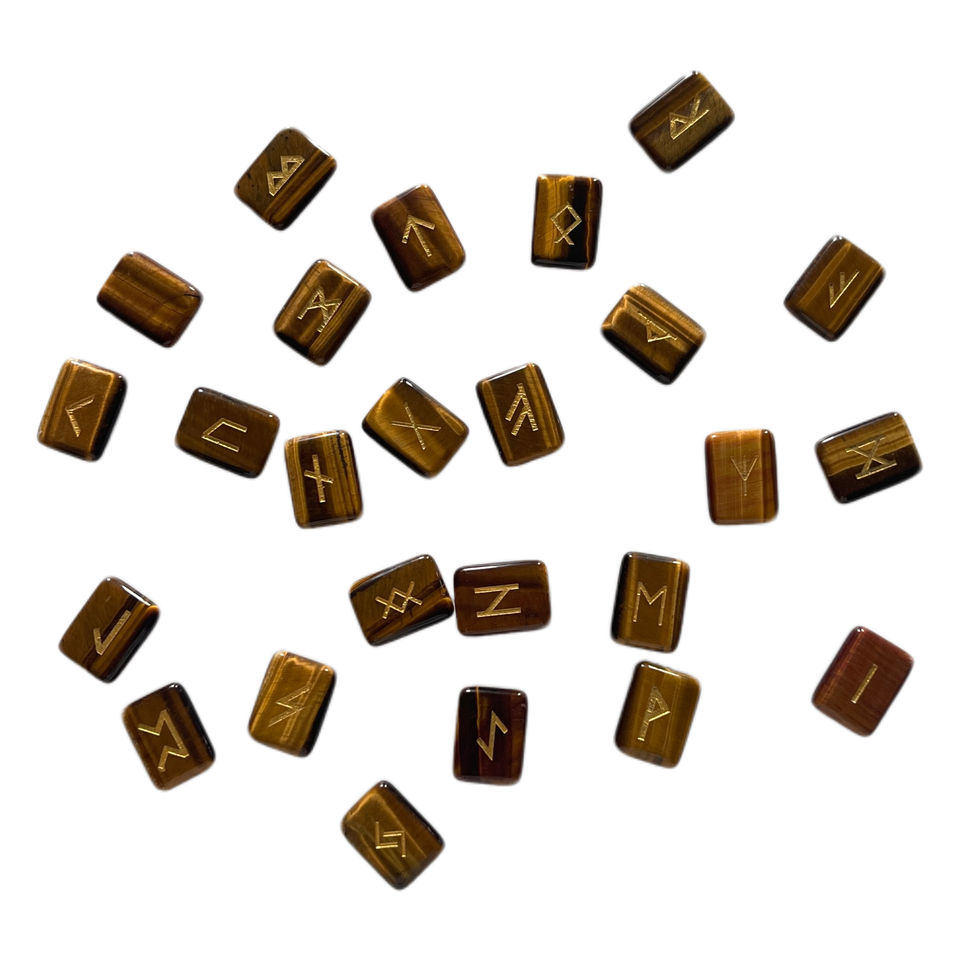 ชุดหินไทเกอร์อายคริสตัลบำบัดธรรมชาติ พร้อมชุดรูนไวกิ้ง สำหรับตกแต่ง
