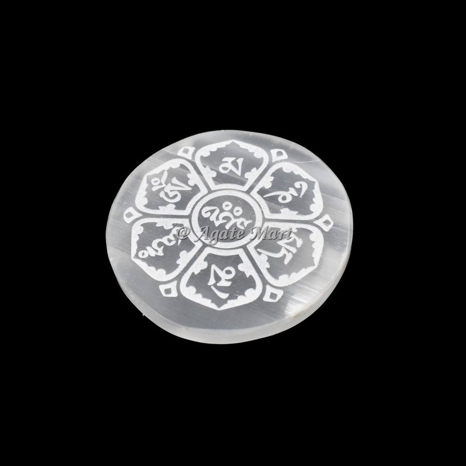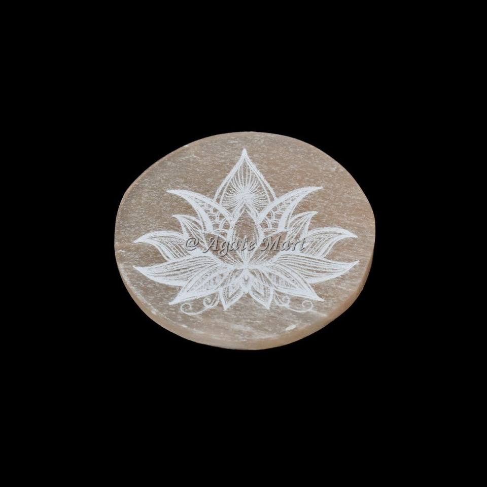 Natural Healing Stone Crystal Selenite Polished Seven Chakra Etched Selenite Charging Plate for Decoration and Therapy