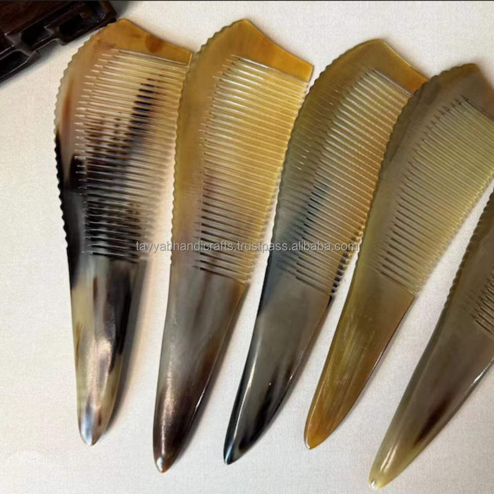 หวีฮอร์นแฮนด์เมดหวีป้องกันไฟฟ้าสถิตย์ทำจากเขาควายแท้หวีเรียบและมีสไตล์