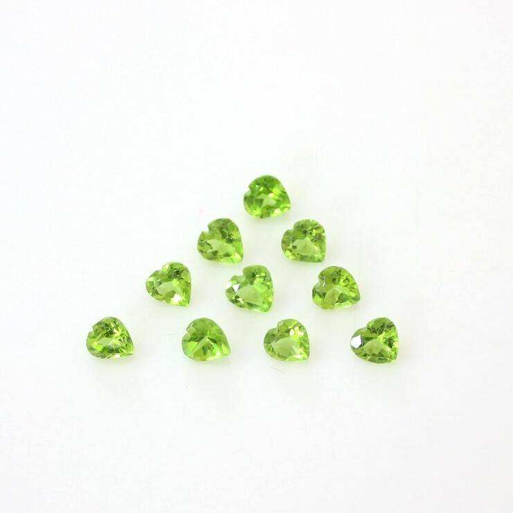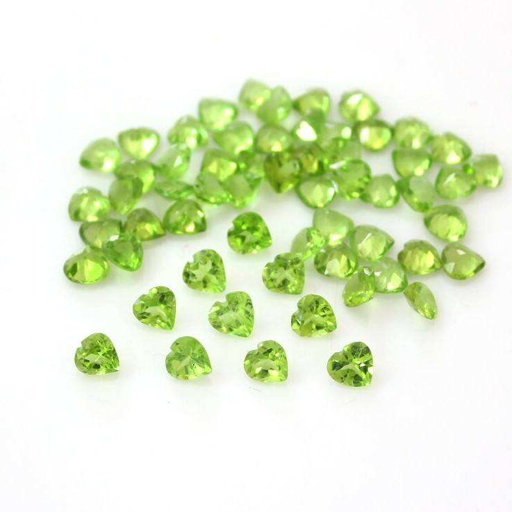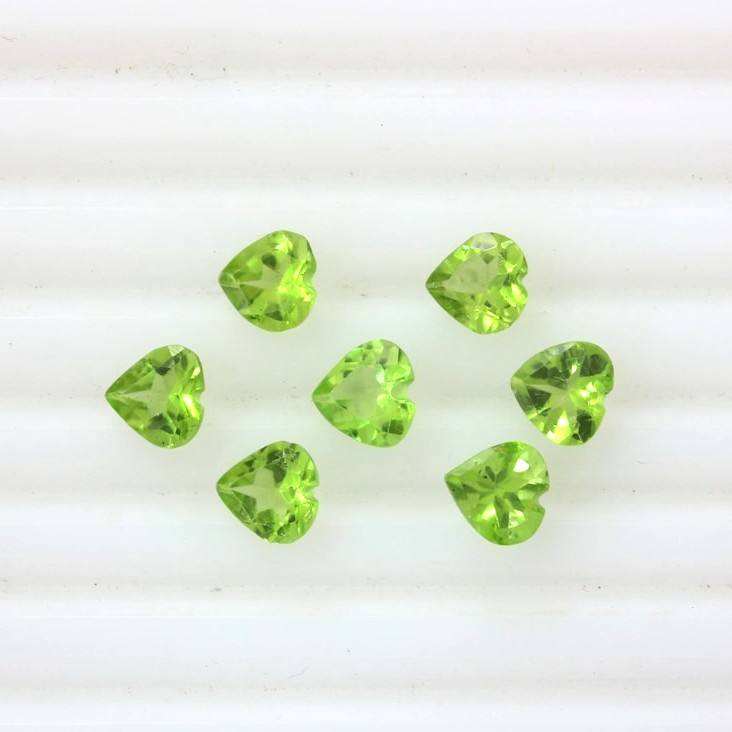 พลอยเพอริดอทดิบสีเขียวทรงหัวใจธรรมชาติ ขนาด 6 มม. พลอยเพอริดอทดิบสีเขียวสำหรับทำเครื่องประดับ พลอยเพอริดอทดิบธรรมชาติ