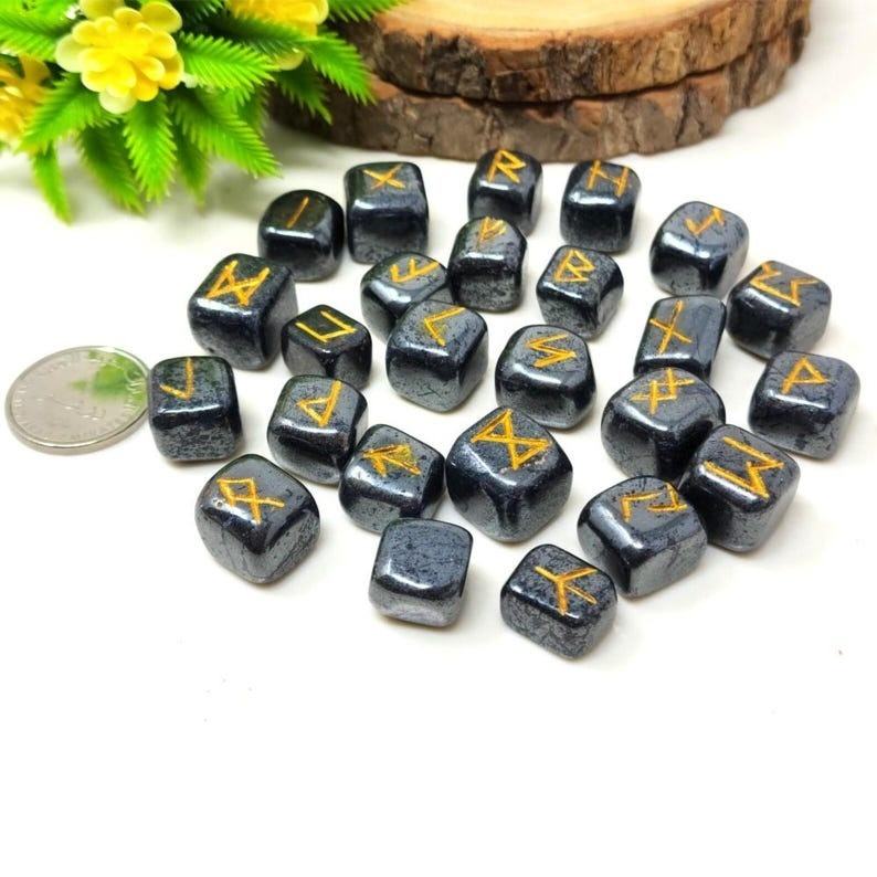 ชุดหินรูนเฮมาไทต์ธรรมชาติ หินคริสตัลฟูทาร์กสวยงาม แกะสลักด้วยหินมุนตาฮะอาเกต หินบำบัดคุณภาพพรีเมียม ทำด้วยมือ แทนความรัก