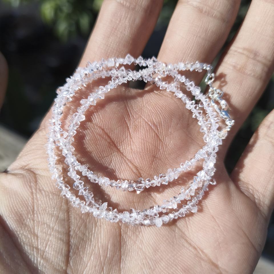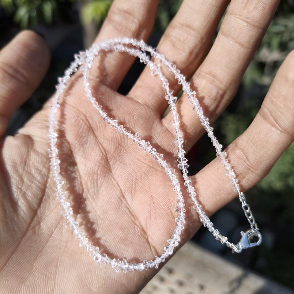 เพชรเฮอร์คิเมอร์ธรรมชาติและสร้อยคอควอตซ์คริสตัลสีเงินของขวัญแต่งงานทำมือสวยงาม