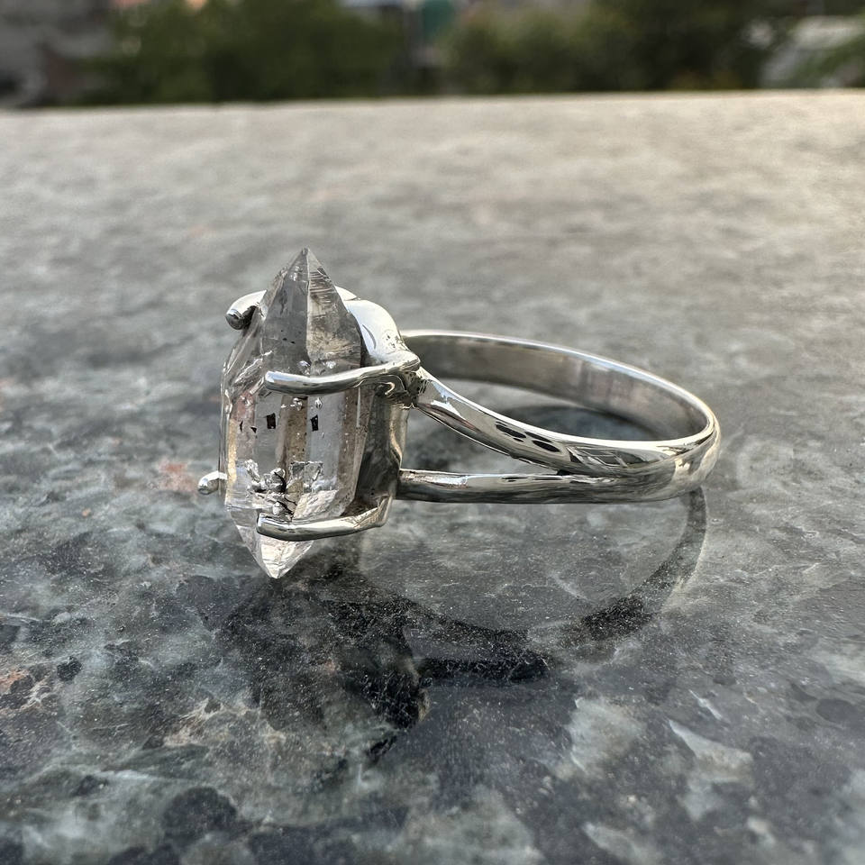 Natural Herkimer Diamond Raw Stone Ring 925 Sterling Silver Handcrafted Gemstone Jewelry Bohemian Style Prong Setting Unisex 3
