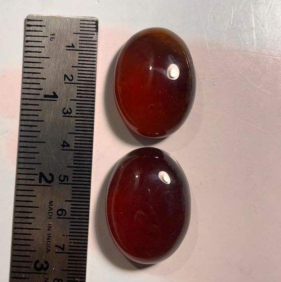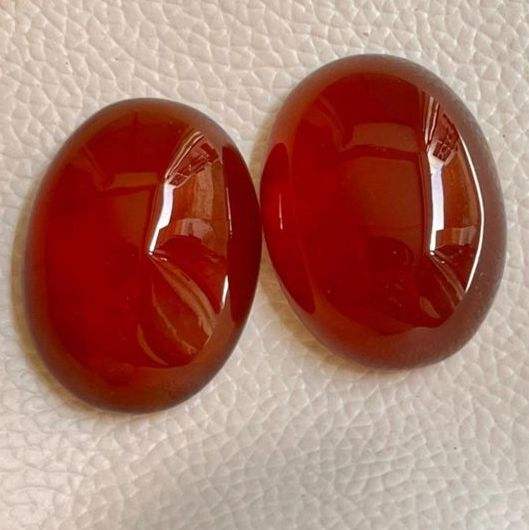 พลอยเฮสโซไนต์การ์เนตทรงรีแบบคาโบชองขัดเงาคู่หนึ่งพร้อมประกายรุ้ง
