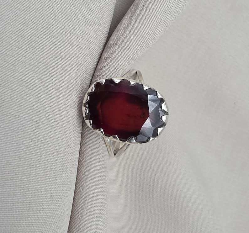 แหวนโกเมนเฮสโซไนต์ธรรมชาติ เงินแท้ 925 รูปไข่ พลอยรูปไข่ ขนาด US 8