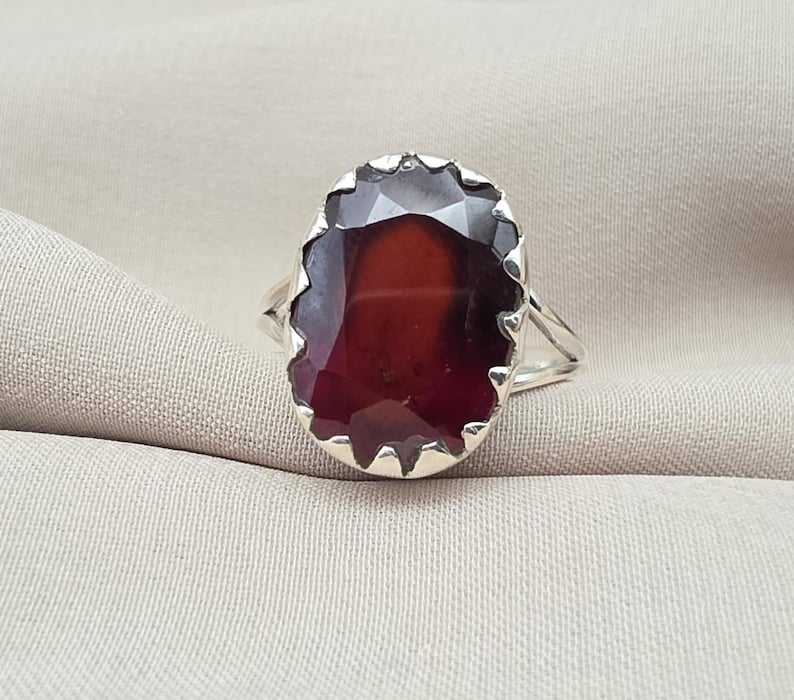 แหวนเงินแท้ 925 ประดับโกเมนสุดหรู พร้อมเพชรสังเคราะห์ขนาดเล็ก