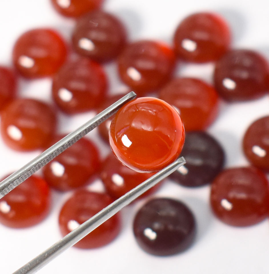 พลอยเฮสโซไนต์การ์เนตทรงกลมแบบคาโบชอง หลังแบน ขนาดปรับเทียบแล้ว ขายส่ง มีจำหน่ายขนาด 10 มม. พลอยเม็ดเดี่ยวสำหรับทำเครื่องประดับ