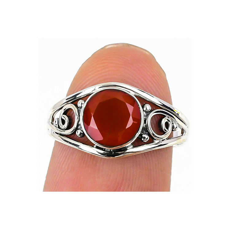 แหวนพลอยคาร์เนเลี่ยนทรงกลมสีแดงสำหรับผู้หญิงสินค้ามาใหม่แหวนพลอยเทียมทรงกลมสำหรับ925สีเงินแท้
