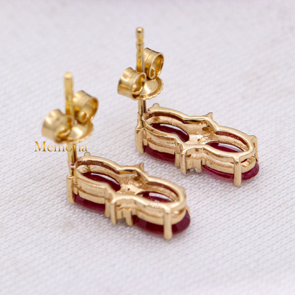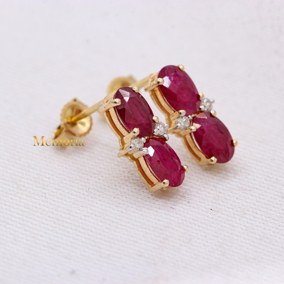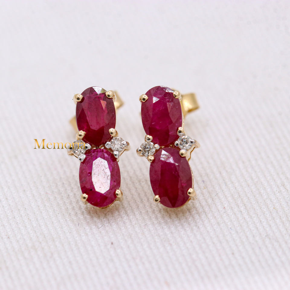 อัญมณีเพชรทับทิมและเพชรธรรมชาติคุณภาพสูง14K ต่างหูทองคำทำด้วยมือสีเหลืองล้วนสำหรับผู้หญิงขายส่ง