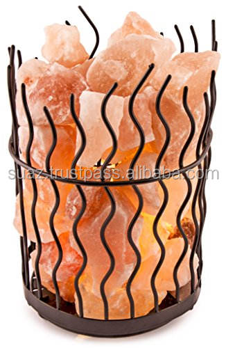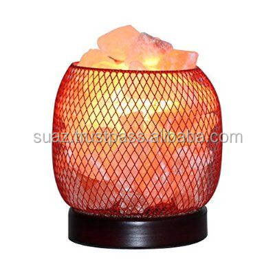 Natural Himalayan Salt Lamp with Metal Basket Home Decor Air Purifier Night Light Relaxation Wellness Gift
