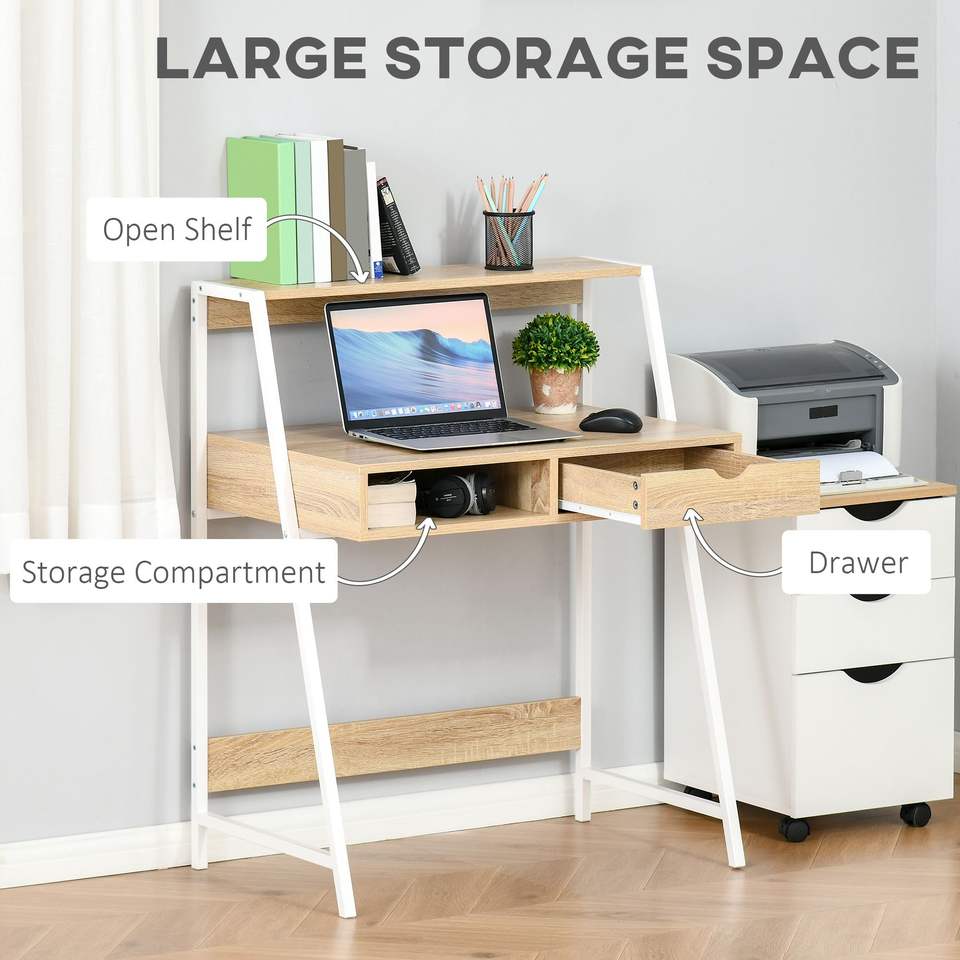 โต๊ะทำงานที่บ้านแบบธรรมชาติพร้อมลิ้นชักและชั้นวางของ โต๊ะคอมพิวเตอร์สำหรับพื้นที่ขนาดเล็ก โต๊ะอ่านหนังสือ