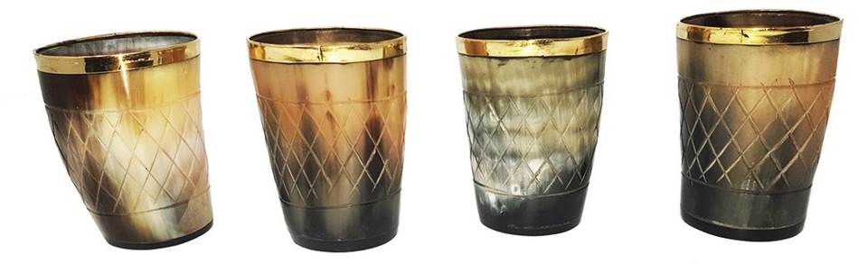 แก้วเขาสัตว์ธรรมชาติ ขอบทองเหลือง เป็นมิตรกับสิ่งแวดล้อม ปลอดภัยสำหรับอาหาร สไตล์เอเชียนเซน สำหรับดื่มวิสกี้ ไวน์ อุปกรณ์บาร์ ผับ ขายส่ง