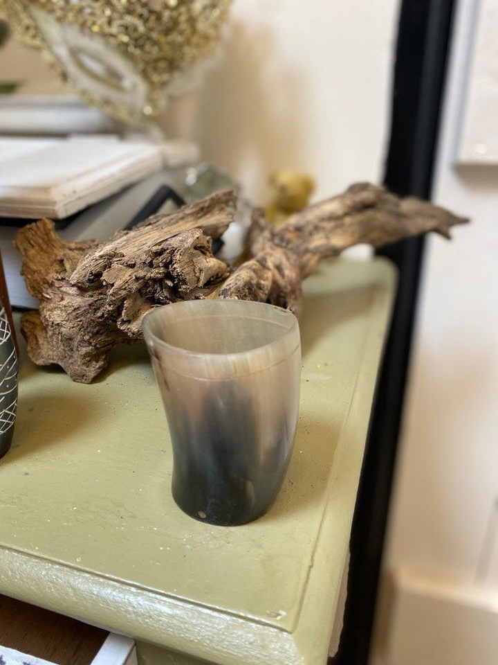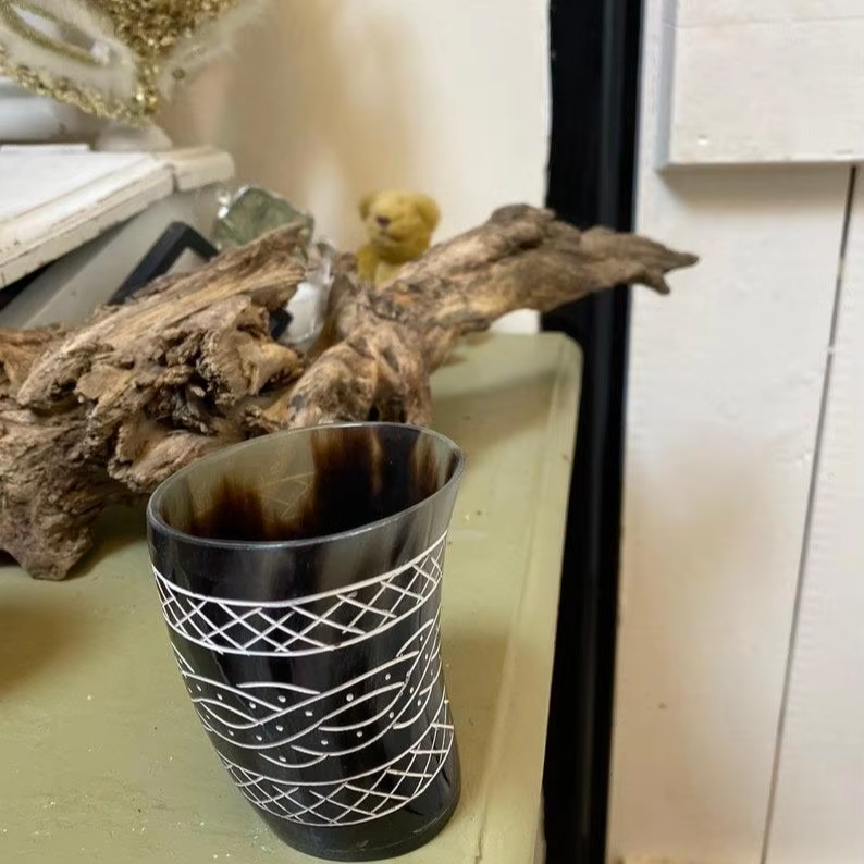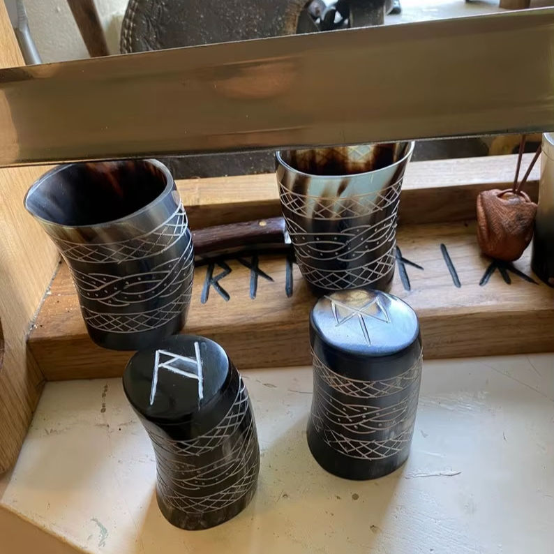แก้วช็อตทำจากเขาสัตว์ธรรมชาติ สไตล์ไวกิ้งแบบเรียบง่าย ขัดเงา ลายสัตว์ ดีไซน์เรือเดินสมุทร แก้วขนาดเล็กสำหรับใส่เครื่องดื่ม เช่น วอดก้า วิสกี้ เตกีลา ของที่ระลึก