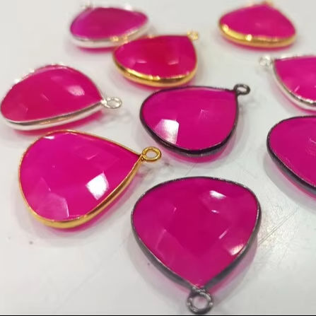 บริโอเลตต์ขอบพลอยวงเดี่ยวทรงหัวใจสีชมพูร้อนแรงตามธรรมชาติ20มม.
