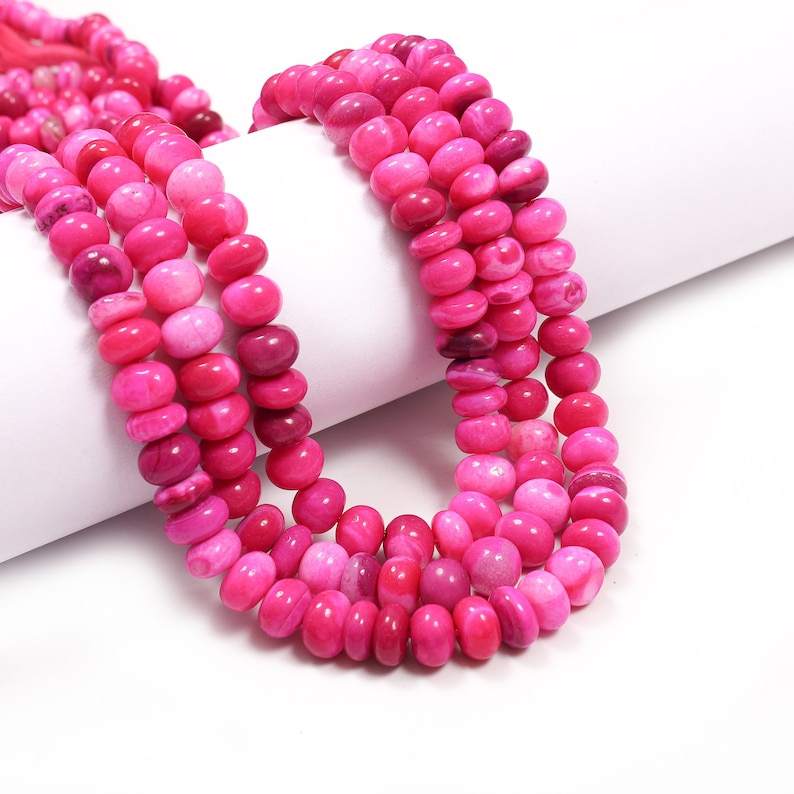 ลูกปัดหินโอปอลสีชมพูธรรมชาติสีตัดเรียบลูกปัดหินโอปอลขนาด7-8มม. ลูกปัดขัดแบบหลวมสำหรับทำเครื่องประดับในราคาขายส่ง