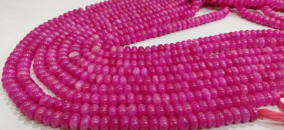 ลูกปัดหินควอทซ์สีชมพูธรรมชาติเม็ดเรียบขนาด8มม. ต่อเส้นยาว8นิ้ว