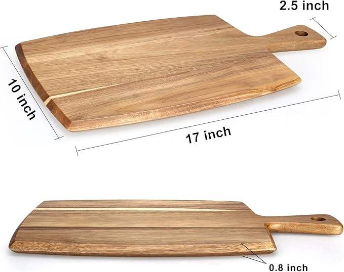 เขียงไม้อะคาเซียทรงสี่เหลี่ยมผืนผ้าแบบพรีเมี่ยมสำหรับบ้านธรรมชาติเขียงที่มีด้ามจับ