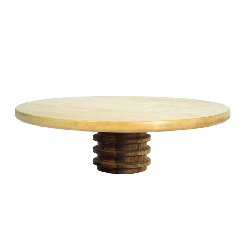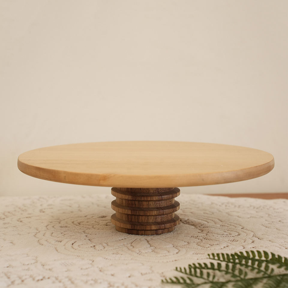 ชุดแหวนไม้อะคาเซียทำจากไม้และไม้เบิร์ชด้านบนแท่นวางเค้กสำหรับงานปาร์ตี้