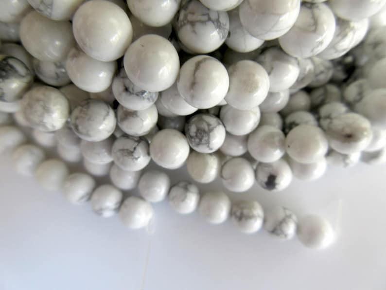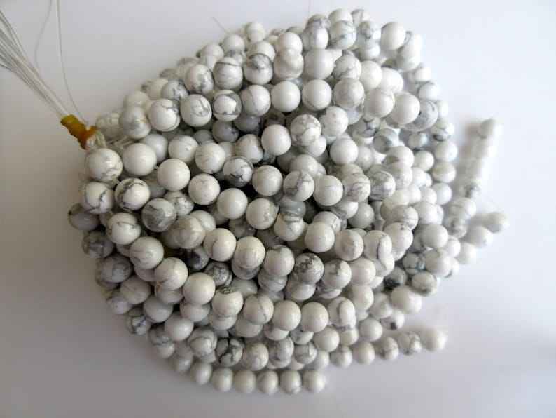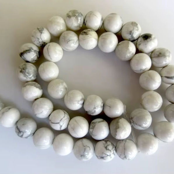 ลูกปัดหินฮาวไลต์ธรรมชาติ สีขาวสวยงาม เหมาะสำหรับ...