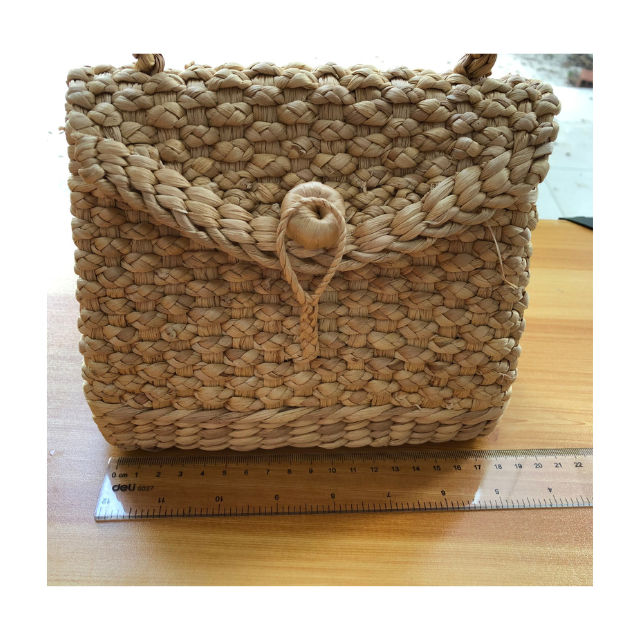 กระเป๋าถือผักตบชวาธรรมชาติตกแต่งด้วยผ้าดอกไม้และภายในเรียงรายทำด้วยมือจากเวียดนามสำหรับการใช้งานแบบสบายๆปิกนิกหรือการเดินทาง