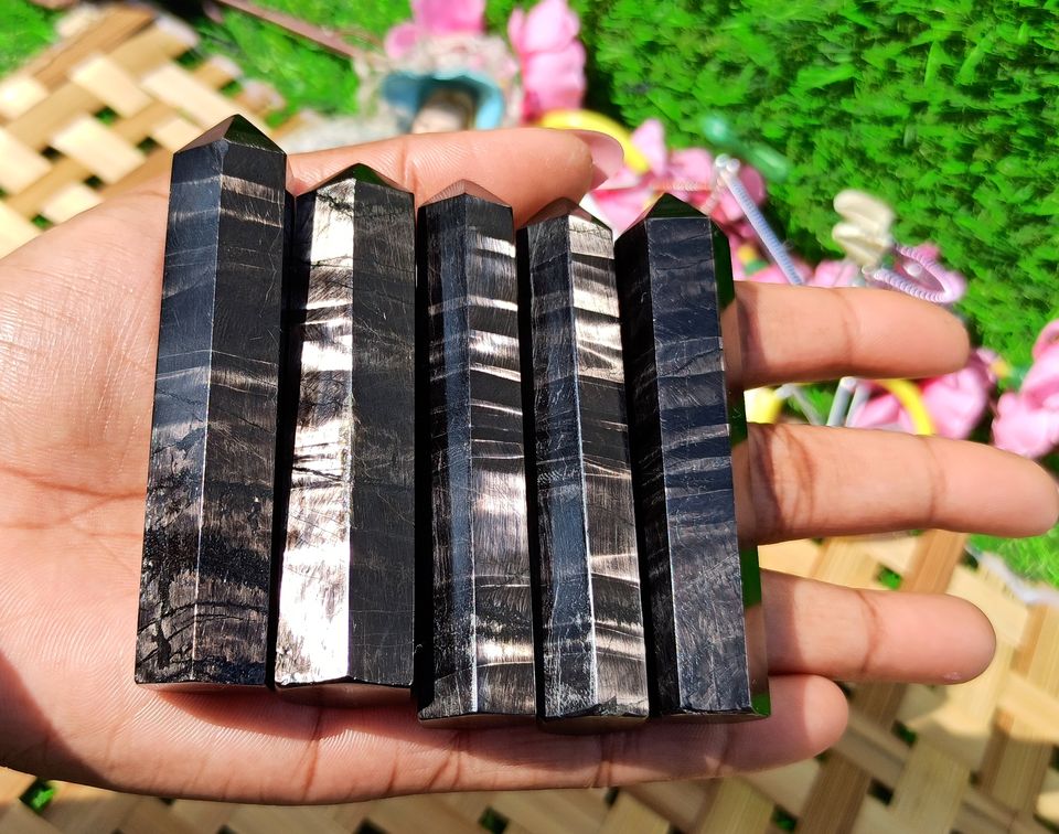 คริสตัลไฮเปอร์เธนแจสเปอร์ธรรมชาติ รูปทรงแท่ง ขัดเงาด้วยมือ ลายเส้นสีเข้ม พลอยทรงหอคอย สำหรับการทำสมาธิ เรกิ บำบัดพลังงานจักระ นำเข้าจากสหรัฐอเมริกา