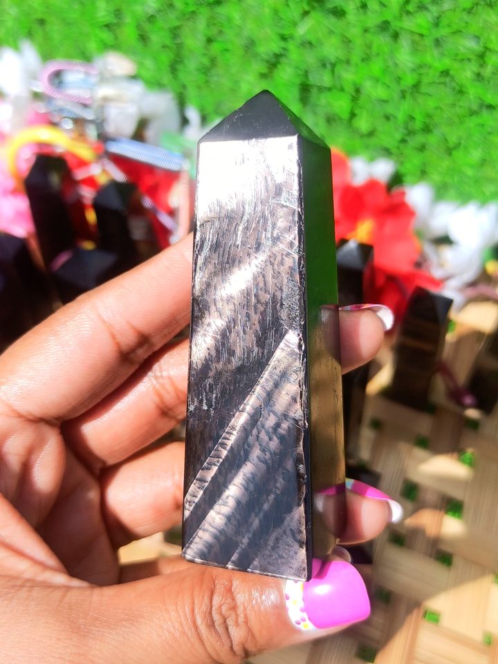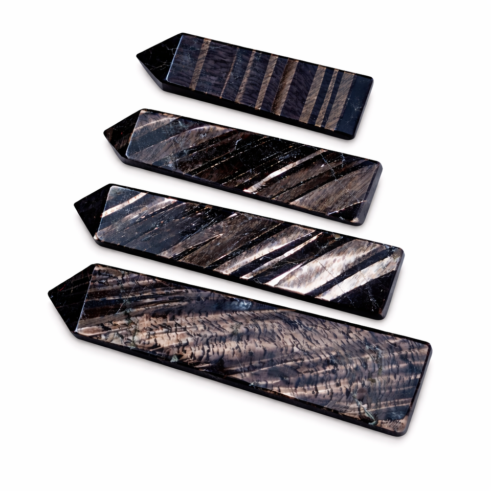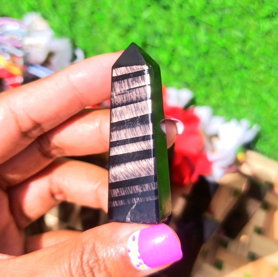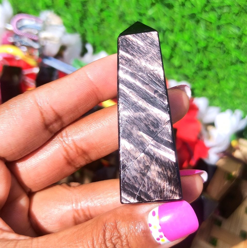 Natural Striped Hypersthene Jasper Obelisk Flat Carving Hand Polished Dark Gemstone Tower Meditation Reiki Chakra Grounding