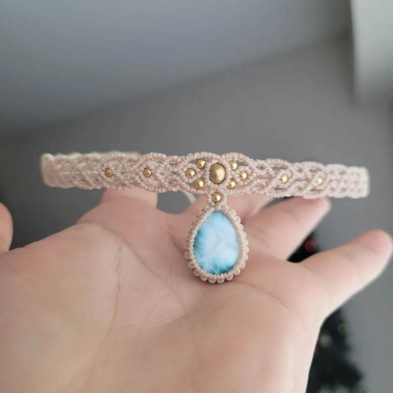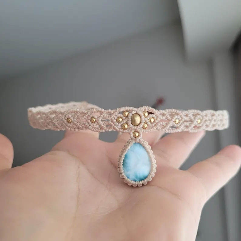 สร้อยคอมาคราเม่ไข่มุกเทียมธรรมชาติ ทำด้วยมือ จี้รูปหยดน้ำสีฟ้า เครื่องประดับลายดอกไม้เรียบง่ายสวยงาม