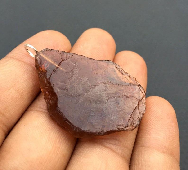 ธรรมชาติอิมพีเรียลพลอยบุษราคัมไม่ได้รับการรักษาหยาบ92.5เงินสเตอร์ลิงศาสนาคริสตัลทำด้วยมือจี้