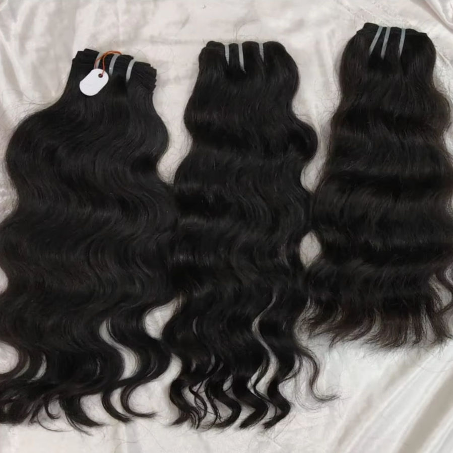 มัดผมดิบธรรมชาติแบบอินเดียผมลอนคลื่นทอคู่เครื่องทอแบบ Remy