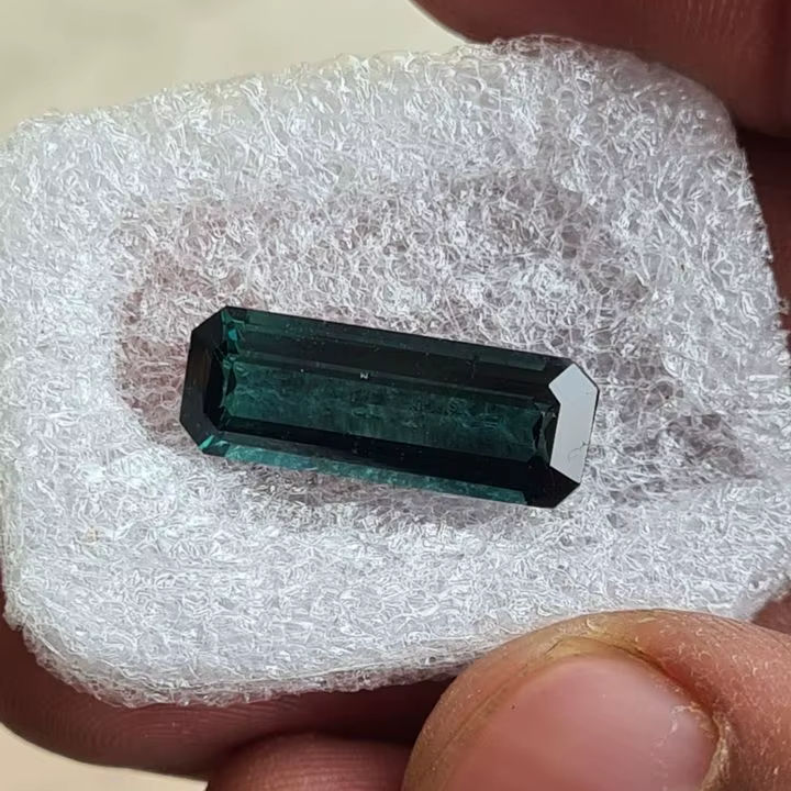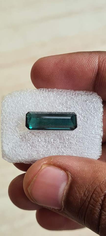 พลอยทัวร์มาลีนสีน้ำเงินอินดิโกธรรมชาติทรงแปดเหลี่ยมเจียระไน