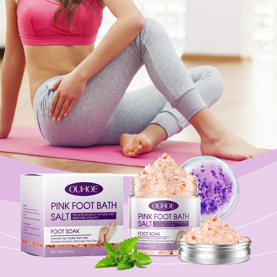 เกลืออาบน้ำเท้าสำหรับสปาสีชมพูให้ความชุ่มชื้นขัดผิวอย่างล้ำลึกด้วยส่วนผสมจากธรรมชาติ
