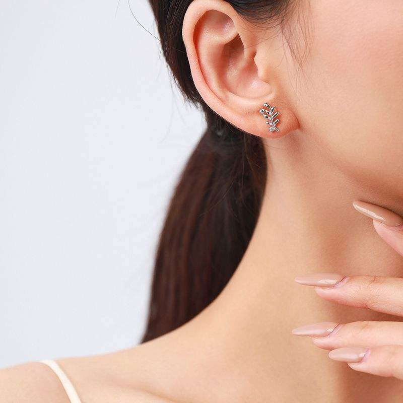 ต่างหูรูปใบไม้ประดับเพชรซีกอนทรงกลมเงินแท้ S925 รุ่น Natural Inspiration แบบปรับแต่งได้ วัสดุทองแดง เหมาะเป็นของขวัญสำหรับผู้หญิงใส่ได้ทุกวัน