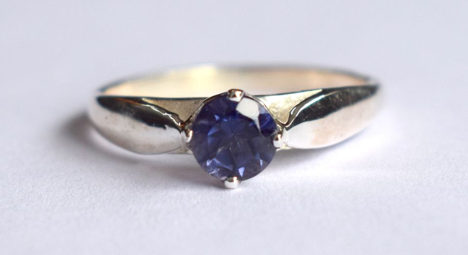 Iolite 4 Prong แหวนเงินแฮนด์เมด-925แหวนเงิน-รอบ Iolite-แหวนสัญญา