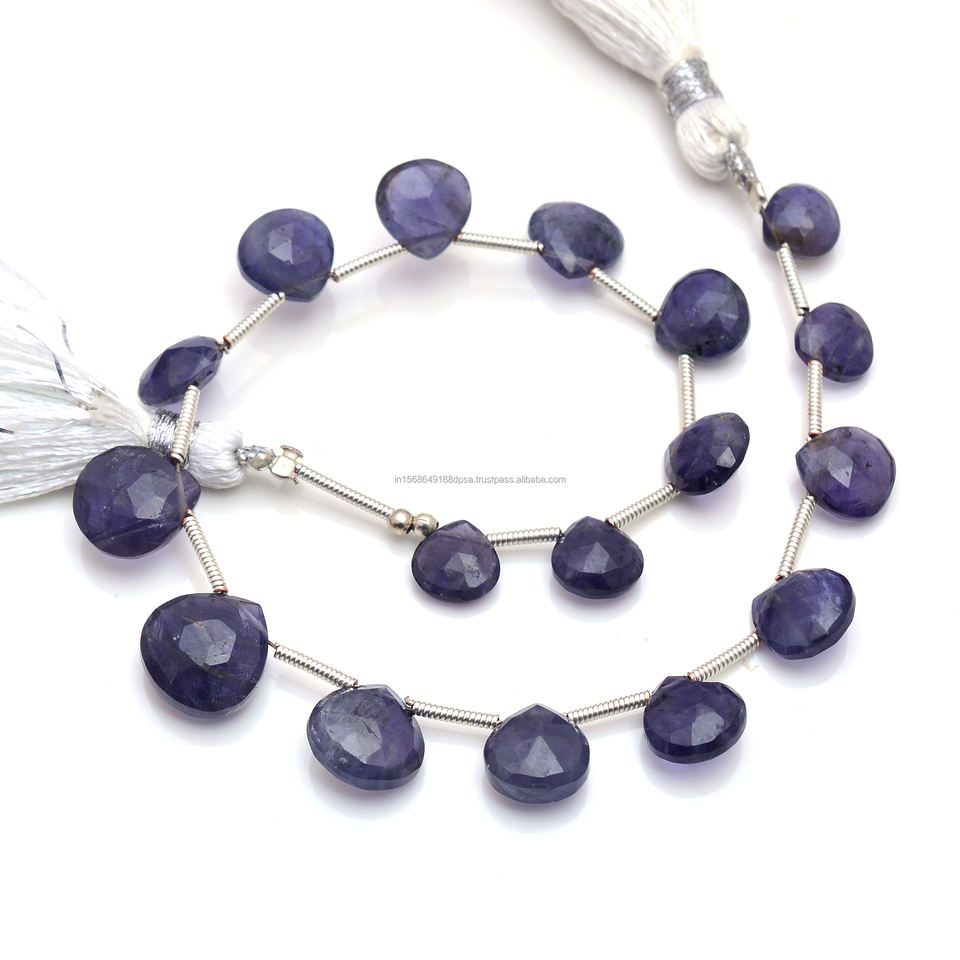 ลูกปัดพลอยไอโอไลต์สีน้ำเงินธรรมชาติทรงหัวใจเจียระไนคุณภาพพรีเมียม ทำด้วยมือ สำหรับทำเครื่องประดับ สร้อยข้อมือ สร้อยคอ