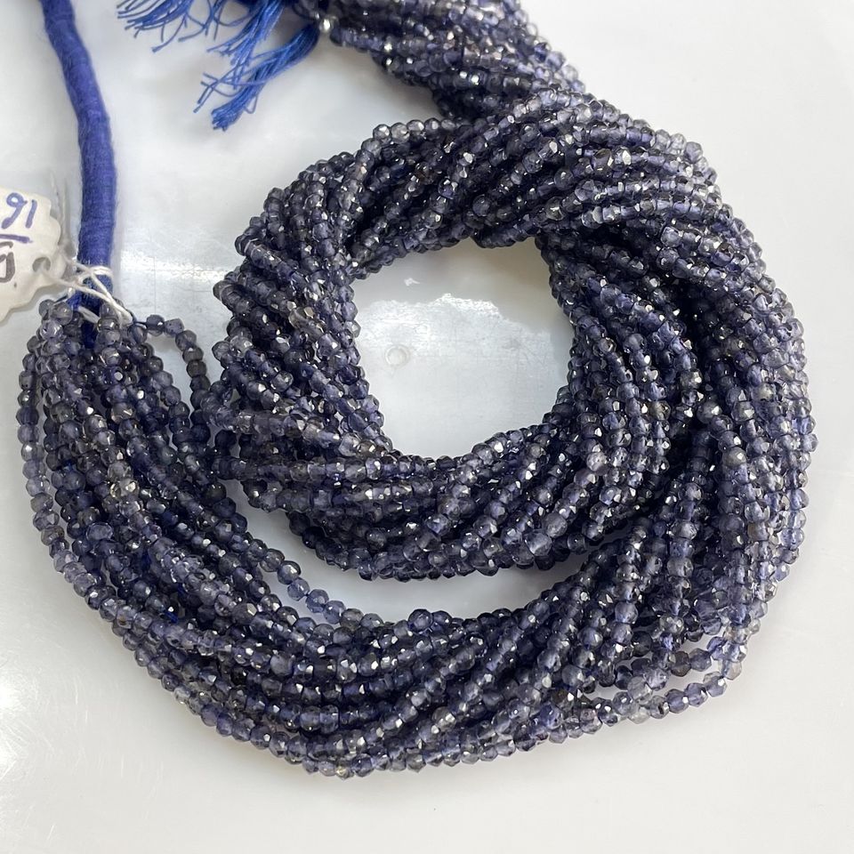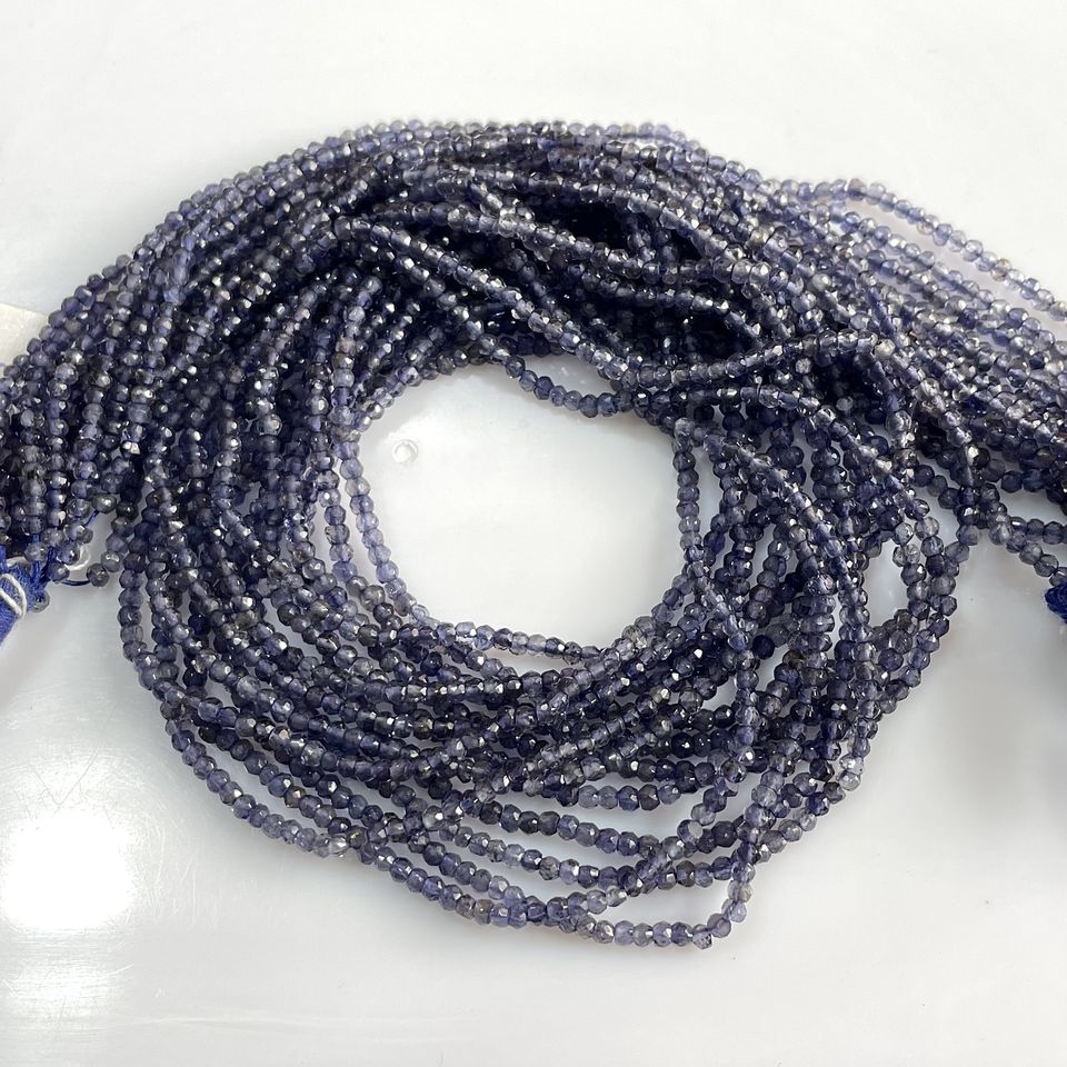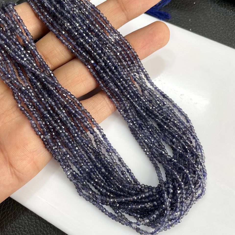 ลูกปัดรูปทรงกลม iolite เหลี่ยมเพชรพลอยธรรมชาติลูกปัดอัญมณีสำหรับทำเครื่องประดับขายส่ง
