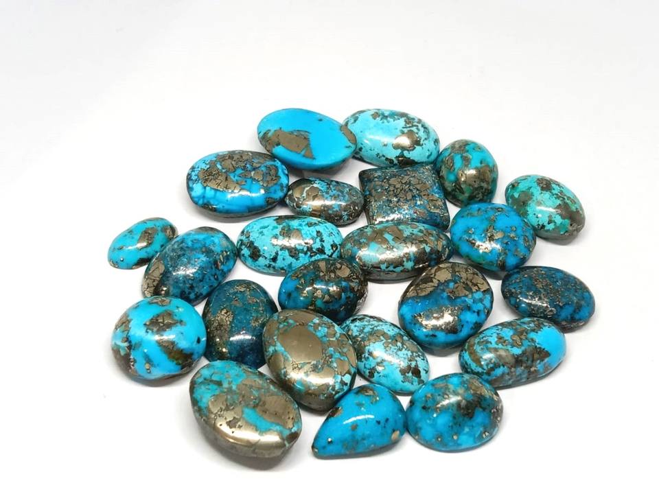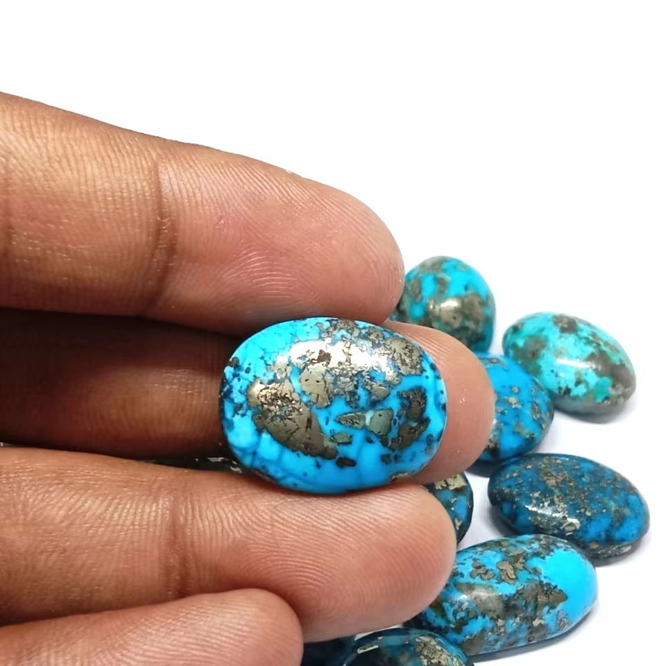 พลอยเทอร์ควอยซ์อิหร่านธรรมชาติทรงหลังเบี้ย รูปทรงและขนาดต่างๆ สำหรับทำเครื่องประดับ พลอยแฟนซีแกะสลักด้วยมือ