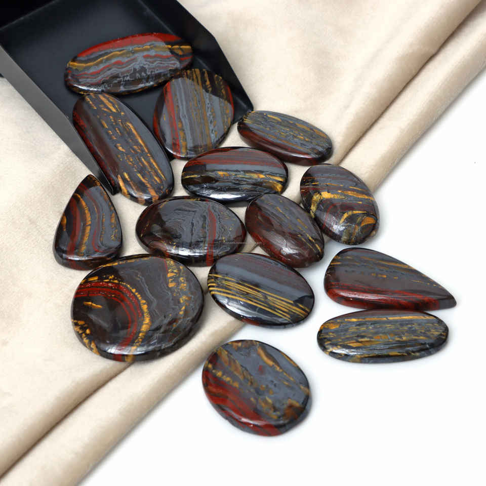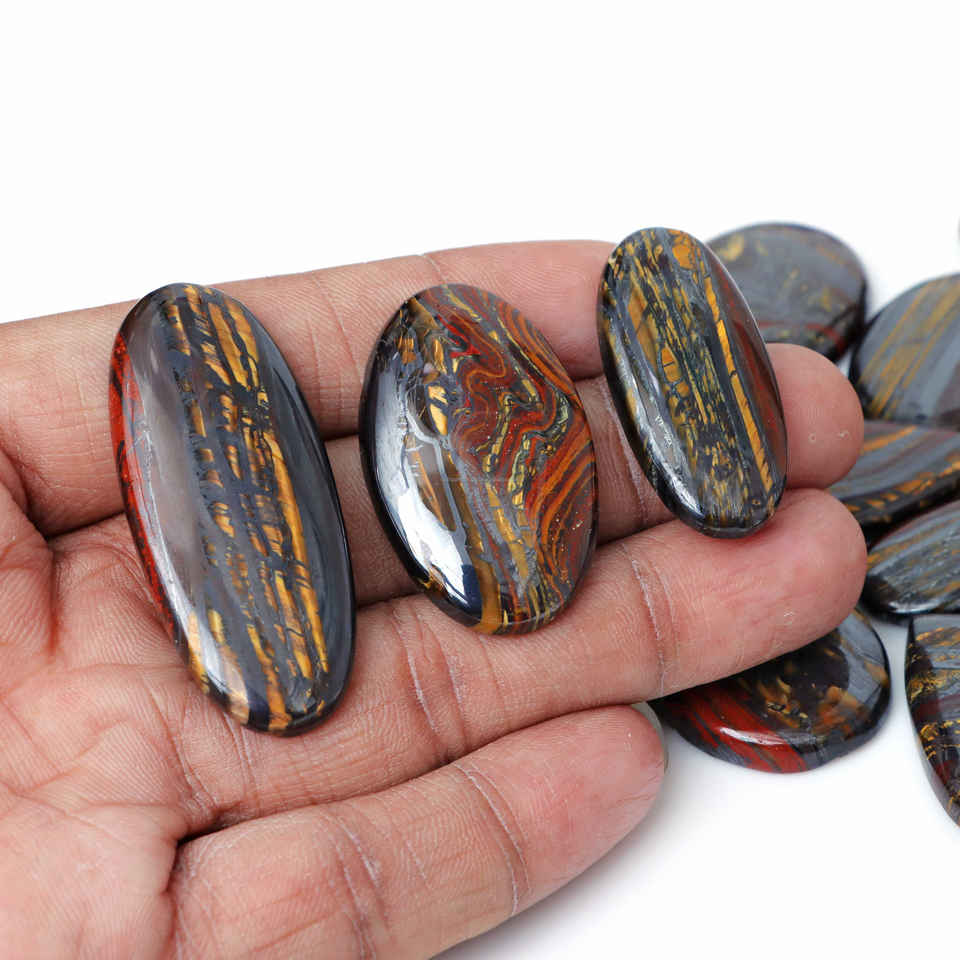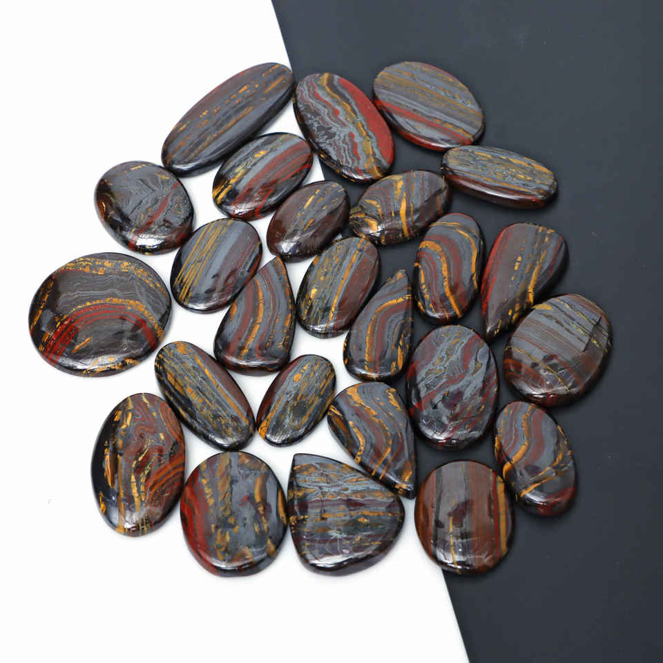 พลอยเหล็กไทเกอร์ธรรมชาติทรงหลังแบนคุณภาพสูง เปลี่ยนสีได้ ขนาด 20-35 มม. สำหรับทำจี้ แหวน เครื่องประดับเงิน