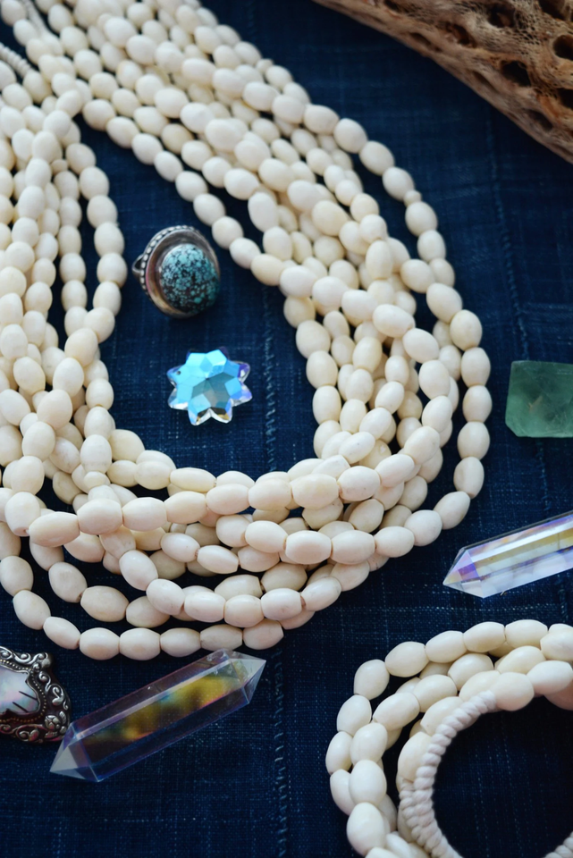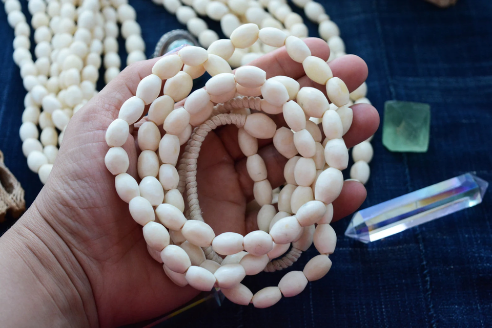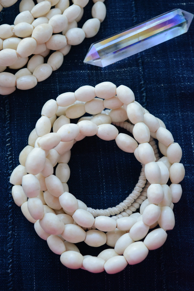 ลูกปัดกระดูกอูฐทรงกระบอก สีขาวงาช้างธรรมชาติ 10 เม็ด ขนาดคละกัน ผลิตในไนจีเรีย / ลูกปัดชนเผ่าแอฟริกัน
