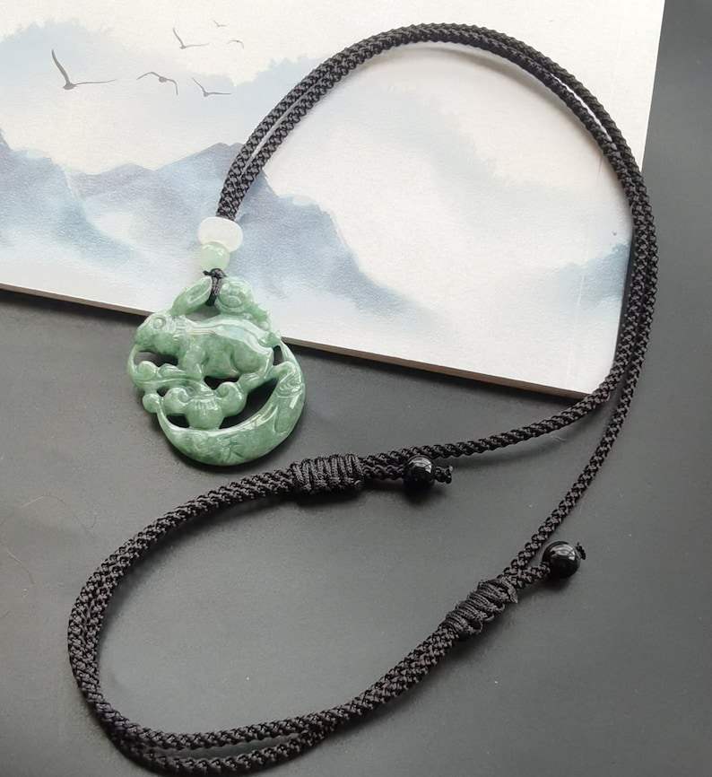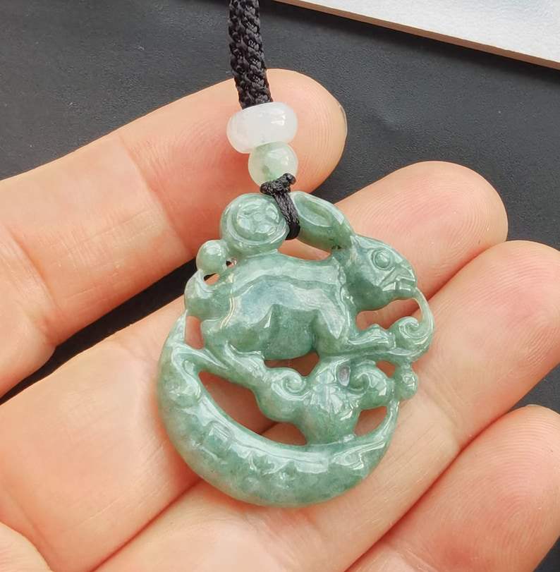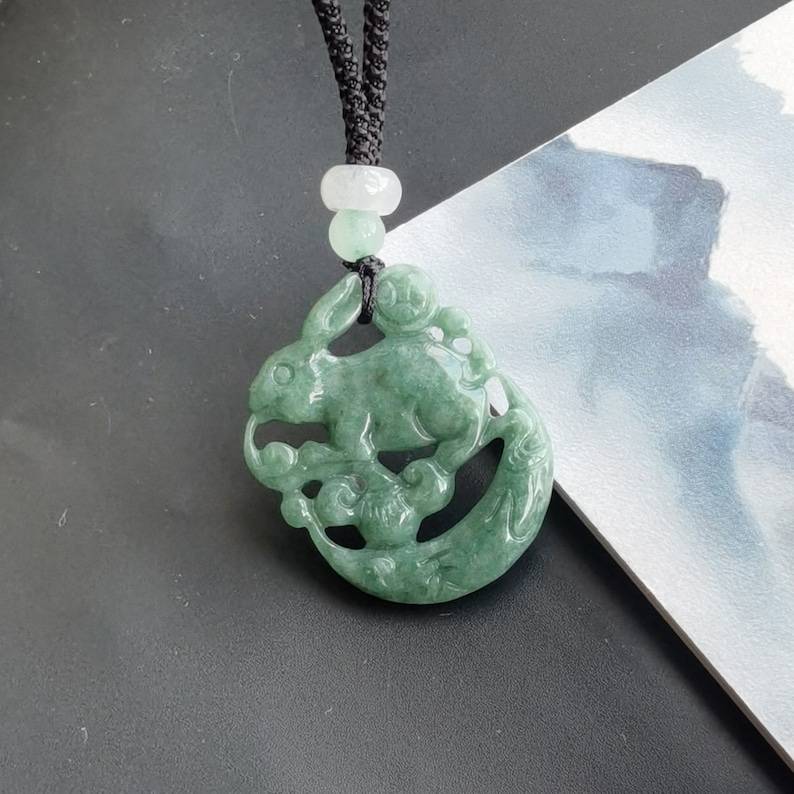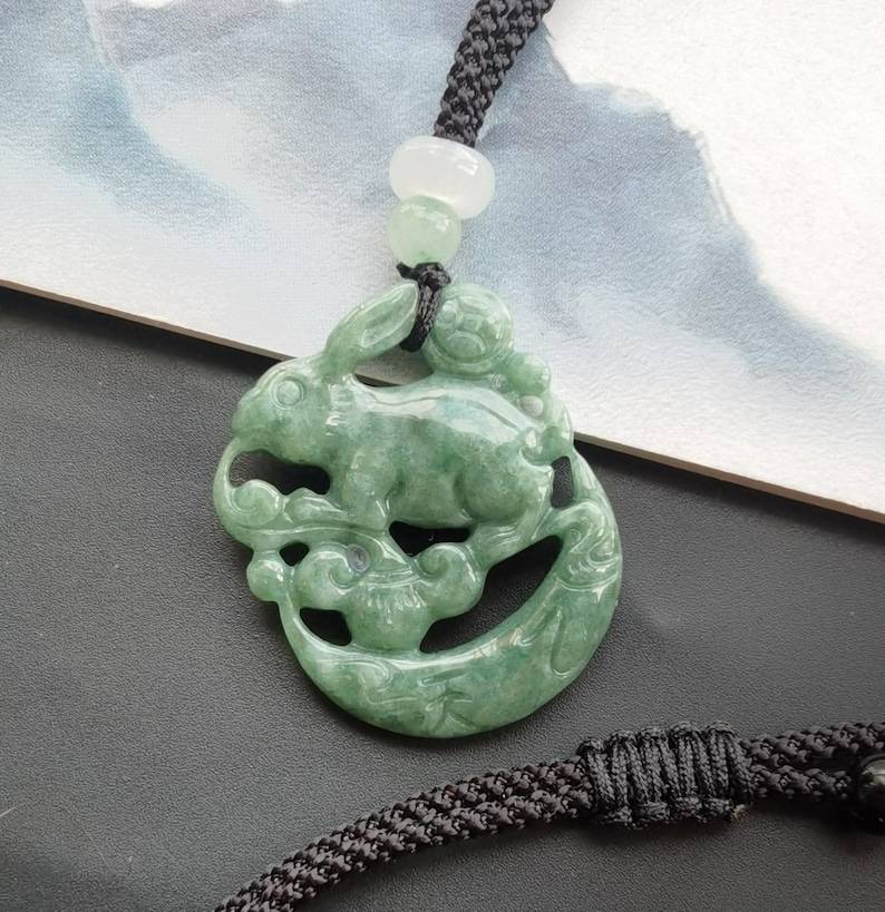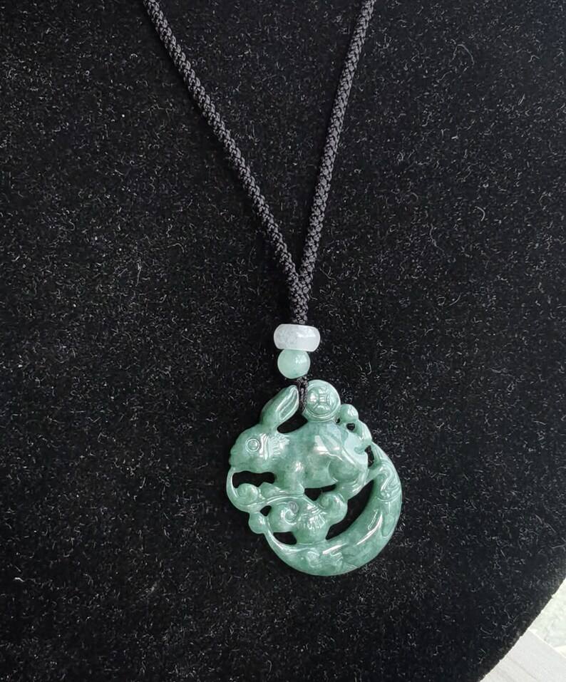 Natural Jadeite Jade Rabbit Pendant Certified Chinese Zodiac Carved Gemstone Necklace Protector Amulet