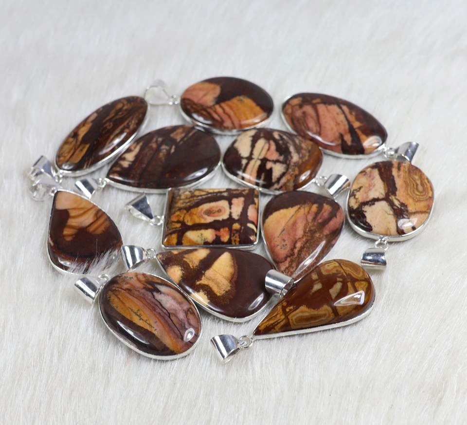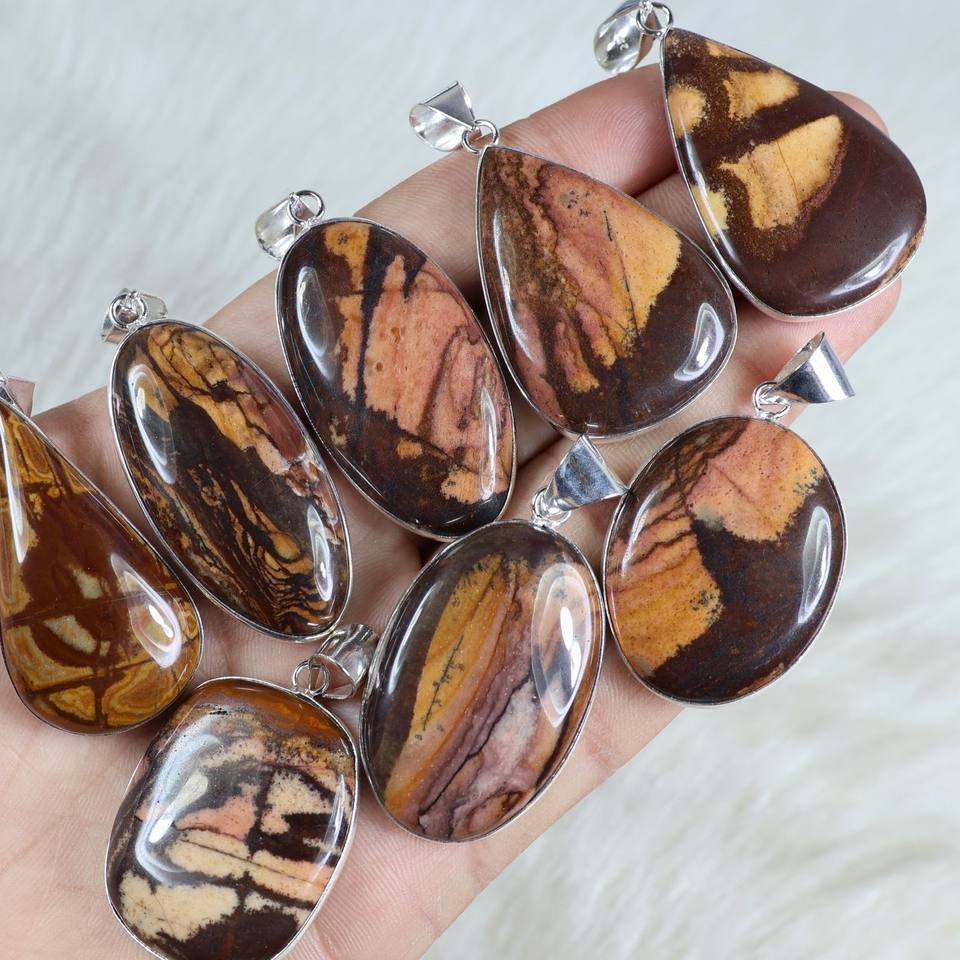 ของขวัญวันครบรอบสำหรับภรรยา จี้หินแจสเปอร์ธรรมชาติสำหรับผู้หญิง ตัวเรือนเงินชุบแบบฝังขอบสไตล์โบฮีเมียนลำลอง เสริมความสงบ