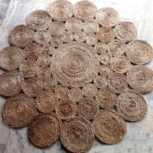 พรมปูพื้นทรงกลมถักจากปอกระเจาธรรมชาติ ลายทางแบบดั้งเดิมสำหรับตกแต่งวันฮาโลวีน ทำด้วยมือ ใช้ได้สองด้าน